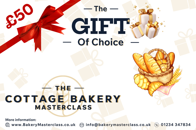 Each voucher is personalized with the recipient's name, making it a unique and special gift. Vouchers can be redeemed for classes at The Cottage Bakery in Ampthill, offering a professional baking environment led by our expert bakers. All vouchers are subject to availability, so be sure to check class schedules when booking.